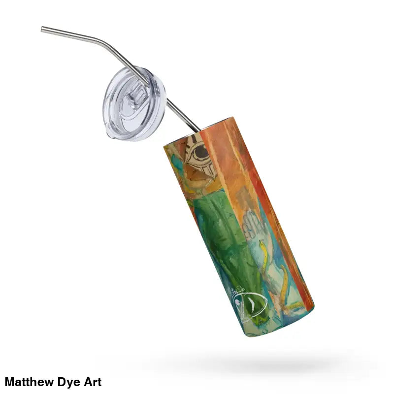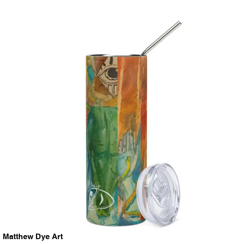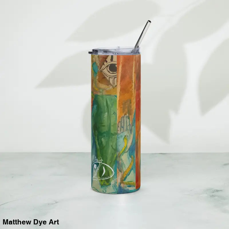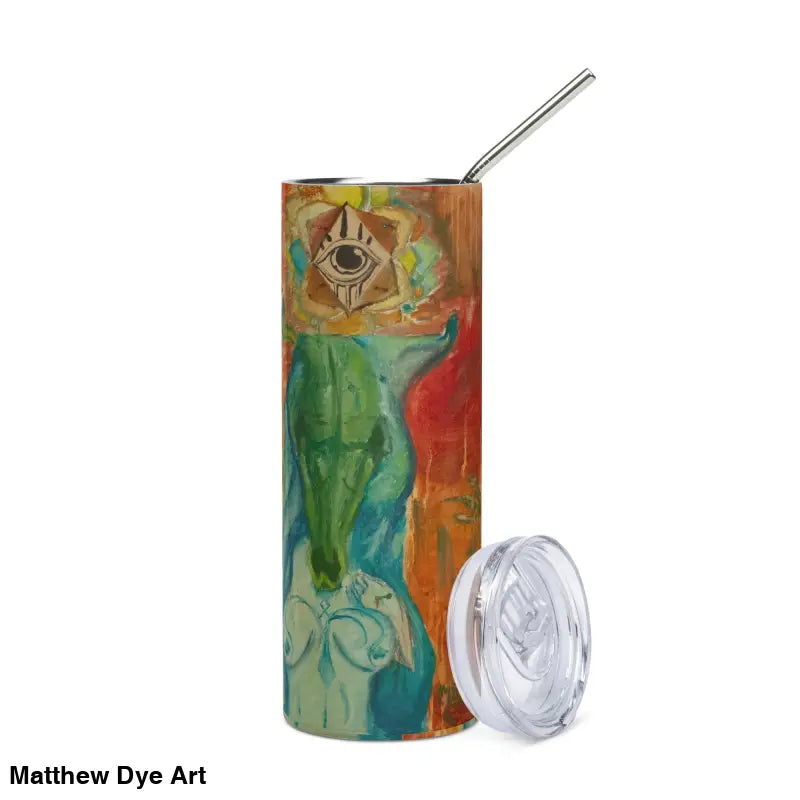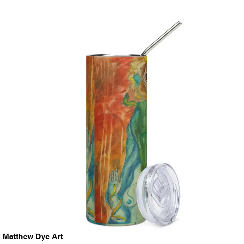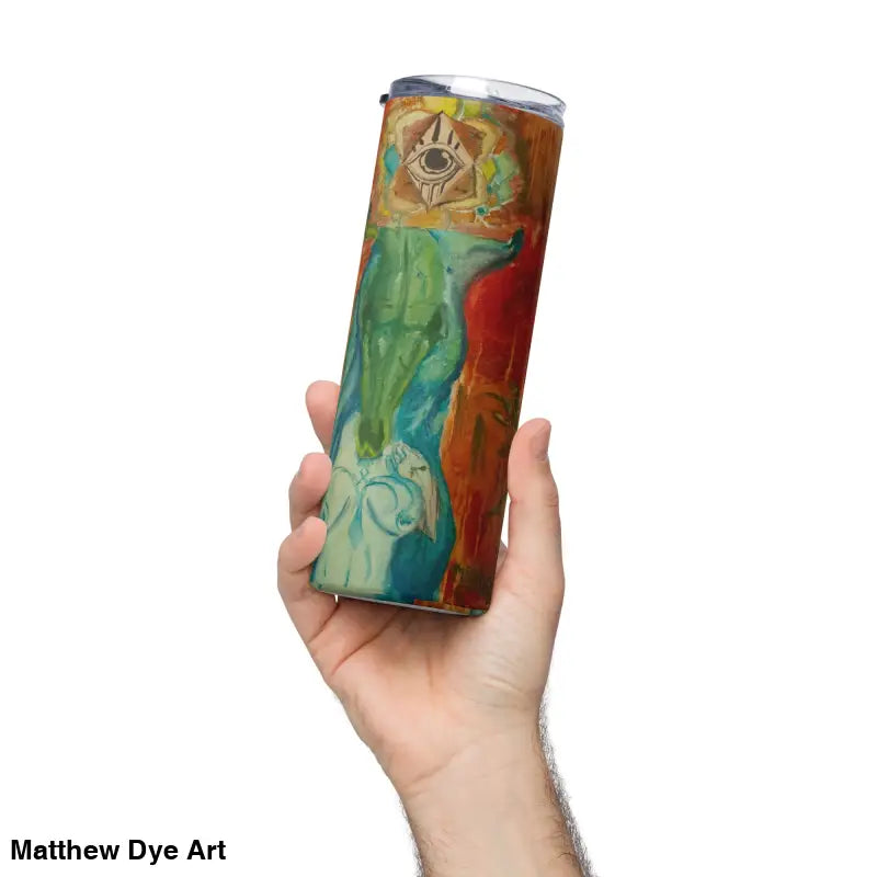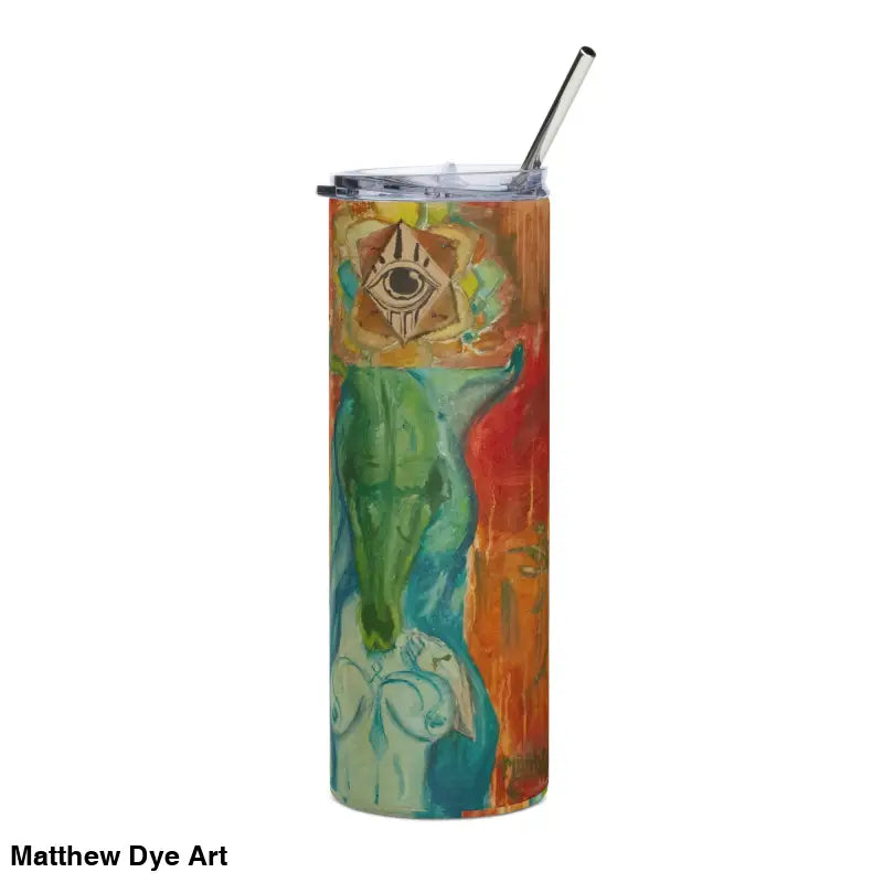 Sip from a vessel of transformation with The Priestess Stainless Steel Tumbler by Matthew Dye Art. More than just a drinkware piece, this 20 oz insulated tumbler is a mystical artifact, adorned with surrealist symbolism, divine imagery, and an enigmatic fusion of human and primal energy. Whether you’re fueling your day with coffee or embarking on a late-night contemplation with herbal tea, this tumbler is your portal to the unknown.